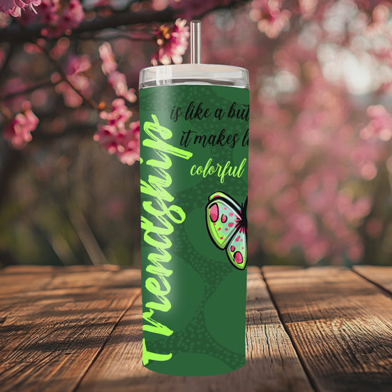 "Sip Happens – 20oz Tumbler" Thermobecher Design *Freundschaftsschmetterling* Personalisierbar